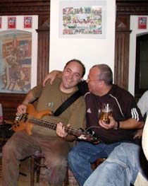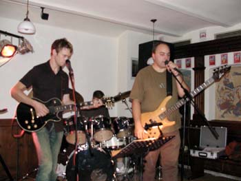 Mit zwei Pausen zog sich der Gig bis nach 23.00 Uhr hin. So lange hatten wir noch nie gespielt und die Zuhörer tobten und forderten immer neue Zugaben, so daß wir selbst wenig geprobte Stücke spontan zum Besten gaben. Zu später Stunde traf dann auch Torsten ein und ergriff bei "Susi" den Bass. Es hatte wieder einmal riesigen Spaß gemacht und wir würden solche "kleinen gemütlichen" Auftritte gern wiederholen. |