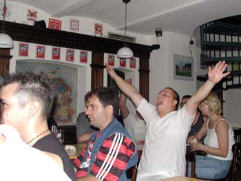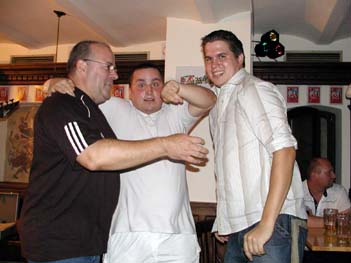 Wir legten gegen 19.30 Uhr los und die zwar wenigen, aber gutgelaunten Besucher kamen gleich in Stimmung. Tja, das einzige Manko an diesem Abend war der geringe Zuspruch (selbst unsere eingefleischten Fans konnten diesmal nicht kommen). Trotzdem gingen die Leute mit und es wurde lauthals mitgesungen, besonders natürlich beim HFC-Lied. |