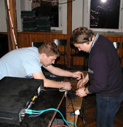 Wieder einmal stand das "Rock am Arsch der Welt" vor der Tür. Wir hatten mit Vitamin B beschlossen, daß dieser Auftritt der vorerst letzte bei diesem kleinen Musikfestival sein sollte. Dieses Mal spielte SekuNdaeR als letztes und konnten so wir die Auftritte der anderen Bands genießen (oder wir lungerten am Einlaß und kassierten Eintritt :-). Thomas hatte zunächst keinen Plan, Yves wollte nicht erkannt werden und die Goldis kämpften mit der Verkabelung. |